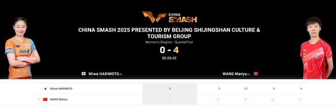 10月3日,在北京的北京大满贯女子单打的四分之一决赛中,国家乒乓球运动员(世界第二)击败了日本乒乓球运动员张·本米(Zhang Benmi)(世界第六名)4-0,四场比赛得分:11-10,10,10,10,10,11-6,11-6,11-4。在这场比赛中,Wang Manyu展示了他的强大统治力,Zhang Benmei根本没有抵抗的能力。 Wang Manyu在这场比赛的第一场比赛中很容易打球,张本梅伊(Zhang Benmeihe)在慢速发烧后返回球后犯了一系列错误。但是,张本梅伊显然在第二场比赛中更加自由地打球。两人战斗9-9和10-10。 Wang Manyu非常适合处理要点。 Wang Manyu的进攻在第三场比赛中变得更加激烈,首先建立了优势。张本梅(Zhang Benmeihe)的信心发抖。很快,王·莫图(Wang Manyu)以11-6的比分领先3-0,得分很高。在第四场比赛中,Wang Manyu还以11-4赢得了FableCilmente。这场比赛结束后,日本女子单身是安尼尔(Annih)iled,没有人进入半决赛。 Mika Kawa是女子单打半决赛的唯一球员。因此,北京大满贯的日本女队比预期的要低得多。在比赛前,日本乒乓球协会的目标是为冠军努力工作。日本粉丝Hashimoto Hashimoto Honoka Honoka的声音超过了Hashimoto。结果,Mika Kawaki Kawaki是最远的人,Hashimoto Honoka在16人的四分之一决赛中消失了。 This Time, There Were Seven Players in the Japanese Female Singles: Mika Katsukigawa, Ito, Ida Ida, Ida Ida Ida Ida Ida Ida Ida Ida Ida Ida Ida Ida Ida Ida Ida Ida Ida Ida Ida Ida Ida Ida Ida Ida Ida Ida Ida Ida Ida Ida Ida Ida Ida Ida Ida Ida Ida Ida Ida Ida Ida Ida Ida ida ida ida ida ida ida ida ida ida ida ida ida ida ida ida ida ida ida ida ida ida ida ida ida ida ida ida ida ida ida ida ida ida ida ida ida ida ida ida ida ida ida ida ida ida ida ida ida ida ida ida ida ida ida ida ida ida ida ida ida ida ida ida ida ida ida ida ida ida ida ida ida ida ida ida ida ida ida ida ida ida ida ida ida ida ida ida ida ida ida ida在四分之一决赛中。 Wang Manyu 3-0 Hayata Hina [11-6,11-4,11-5],Hayata在四分之一决赛中停了下来。 Zhang Motomika 3-1 Otomika Satsuki [6-11,12-10,11-6,11-3],Otomika在四分之一决赛中停了下来。 Wang Yidi 3-0 Hayamotomika [11-8,11-3,12-10];桥本在四分之一决赛中被捕。 Zhu Qianxi 3-1 Ito Mima [11-5,11-13,11-5,11-7],ITO在四分之一决赛中被暂停。王小大3-0长木木宫[11-3,11-7,11-7],长崎在四分之一决赛中停了下来。 Sun Yingsha 3-1 Hirano Miyayu [11-5,5-11,11-2,11-7];希拉诺在四分之一决赛中被捕。